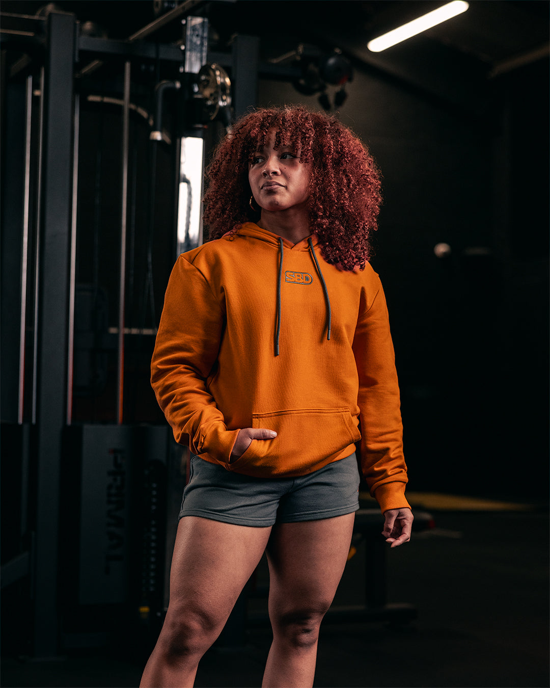 Bumbac greu, cu bucle mari, tricotat în Marea Britanie. Logo brodat și capete de șireturi de înaltă calitate. Potrivire relaxată unisex, cu o buzunar tip marsupiu. SBD Tracabilitate. Fabricat în Sheffield.